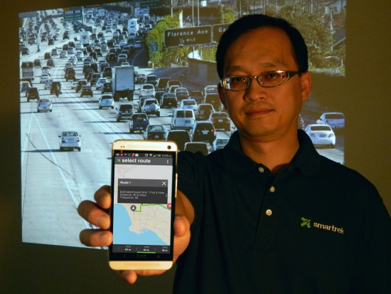 The Smartrek app uses advanced traffic prediction and vehicle routing technology, combined with user rewards, to give drivers the best suggestions for avoiding traffic while helping reduce traffic congestion. READ MORE >>