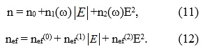 6. Maxwell's equations in the gain medium are used to obtain equations for energy flux [1]. Nonlinear phase effect has been described [1], using the nonlinearity of refractive index [2] (see Fig.3.).
