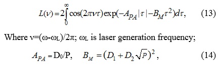 and P(c) are characteristic linewidth and characteristic laser power; k is characteristic parameter of laser nonlinearity; q is non-dimensional inverse power: